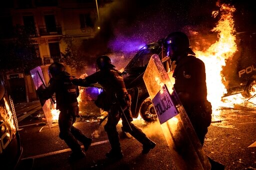 MADRID (AP) — Spanish authorities say that 80 people, including 46 police officers were injured overnight during the most violent of three nights of rioting over the imprisonment of Catalan separatist leaders.