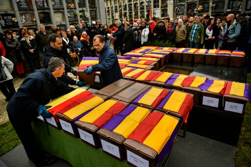 PAMPLONA, Spain (AP) — Marking eight decades since the end of the Spanish Civil War, the remains of 46 unidentified victims of the conflict have been reburied in the northern city of Pamplona.