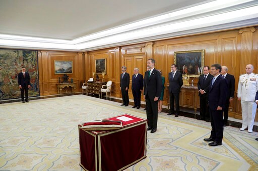 Sanchez came to power Saturday at a ceremony at the Zarzuela Palace a day after successfully leading a no-confidence vote to oust predecessor Mariano Rajoy following a court ruling in a major corruption case involving the conservative leader's Popular Party.