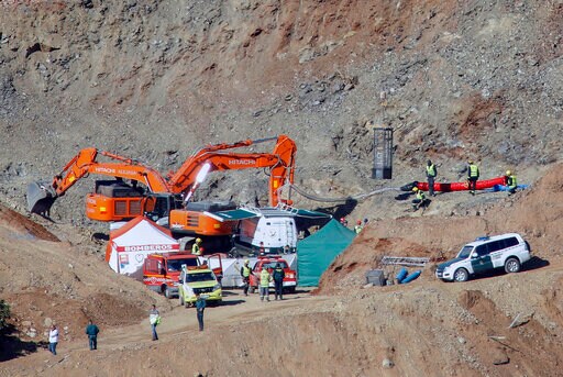 The boy, Julen Rosello, fell down a narrow 110-meter-deep borehole (360-foot) on Jan. 13 while his family was preparing a countryside lunch. He is thought to be about two-thirds of the way down the dry waterhole, stuck behind hardened soil and rock that blocked rescue workers and equipment.