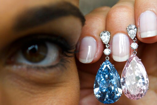 A 14.54-carat flawless Fancy Vivid Blue diamond earring that was the headline offering Tuesday at rival Sotheby's also fell short of its pre-sale estimate. It was paired with a pear-shaped pink diamond earring.