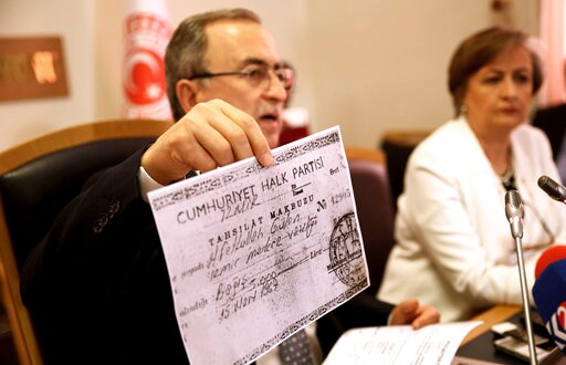 The legislator showed a document dating back to 1967 that allegedly showed the preacher had donated money to Turkey's pro-secular main opposition party. That party said Friday that the document was false and designed to discredit the opposition.