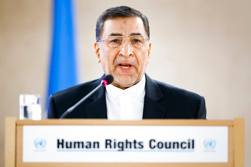 GENEVA (AP) — An Iranian government minister facing European Union and Swiss sanctions for human rights violations has criticized U.S. and Saudi policies at the U.N.'s top human rights body, defying calls for him to stay away.