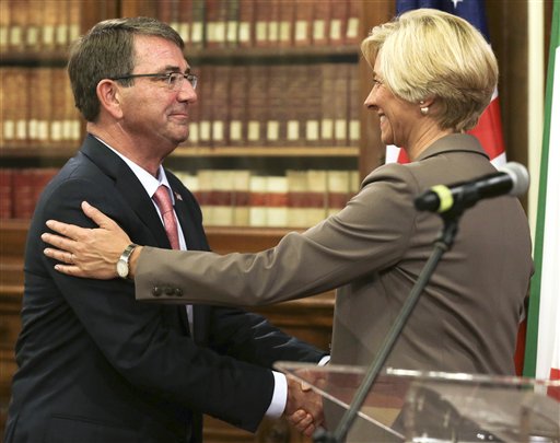 Carter spoke during a press conference in Rome with Italian Defense Minister Roberta Pinotti. A Russian official has called for broader talks on cooperation in the Syrian conflict.