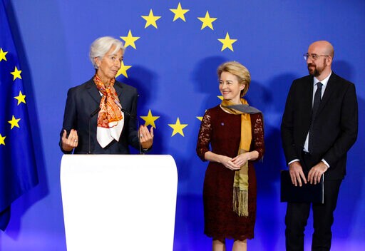 FRANKFURT, Germany (AP) — New European Central Bank President Christine Lagarde says that growth “remains weak” in the 19 countries that use the euro but gave no indication that she was contemplating more stimulus, saying the measures enacted under her predecessor were supporting the economy.