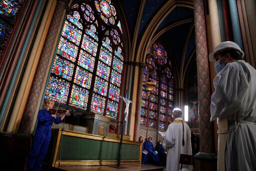 Attendance at the service was sharply restricted due to the cathedral’s reconstruction and the pandemic.