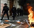 Elsewhere in Paris, protesters attacked a bank branch, breaking glass and carrying off files and computer keyboards, an AFP correspondent saw.