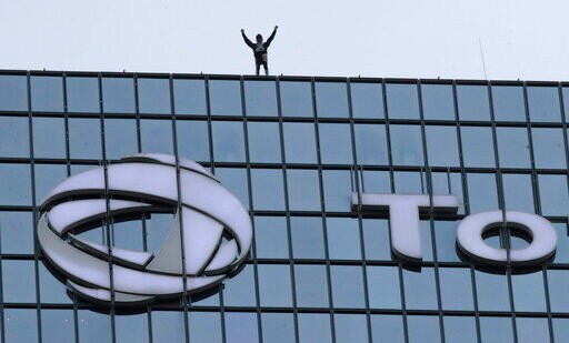 Meanwhile, Alain Robert, the French Spiderman who scales the world’s tallest buildings, climbed a skyscraper in Paris' La Defense business district Monday to call attention to the retirement protests.