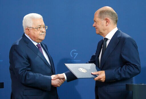 While Scholz did not publicly rebuke Abbas for using the term “Holocaust,” he earlier rejected the Palestinian leader's description of Israel's treatment of Palestinians as “apartheid." Scholz also said he did not believe the time had come to recognize Palestinian statehood, which Abbas repeatedly called for.