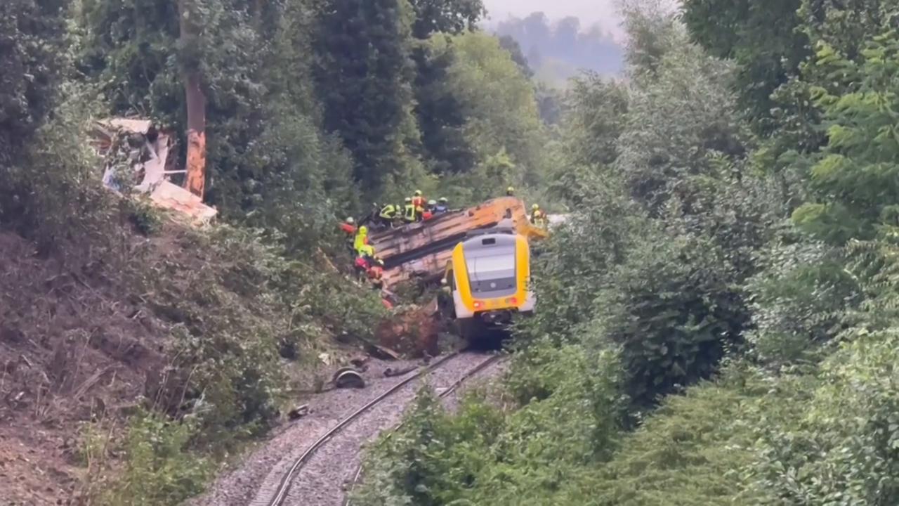 BERLIN (AP) — Investigators believe a landslide, brought on by heavy rainfall, likely caused a regional train to derail in southern Germany, killing three people and injuring 41 more.