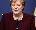 angela merkel speaks into microphone