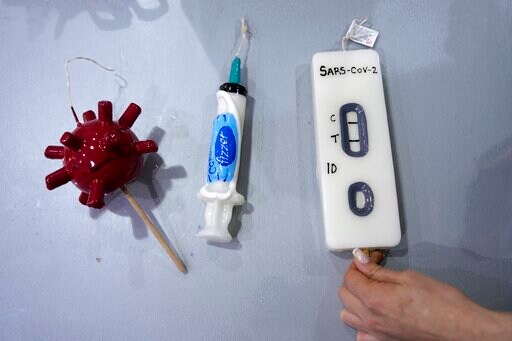 High-selling designs this Easter include pandemic-themed candles that resemble COVID-19 test kits, vaccination syringes and even red-colored representations of the ball-and-spike shaped virus itself.