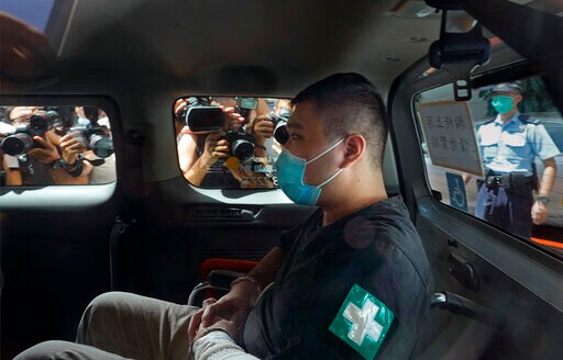Tong Ying-kit was convicted Tuesday of inciting secession and terrorism for driving his motorcycle into a group of police officers during a July 1, 2020, pro-democracy rally while carrying a flag bearing the banned slogan, “Liberate Hong Kong, revolution of our times.”