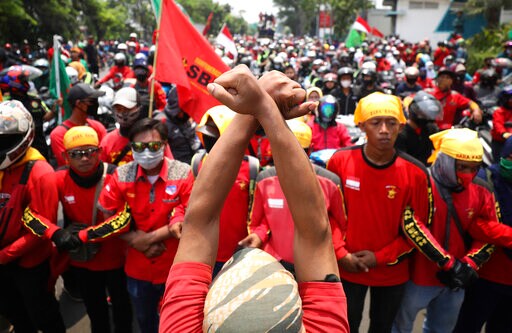 JAKARTA, Indonesia (AP) — Thousands of enraged students and workers staged rallies across Indonesia on Thursday in opposition to a new law they say will cripple labor rights and harm the environment.