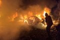 The attack started a massive fire that sent a column of black smoke into the air, social media footage shows.