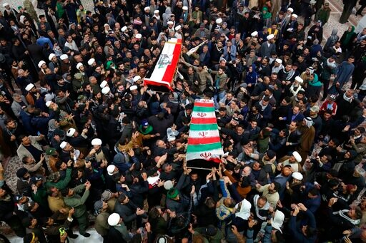 Throngs of mourners carried Sunday the flag-draped casket of Gen. Qassem Soleimani off a plane in Ahvaz in southwestern Iran.