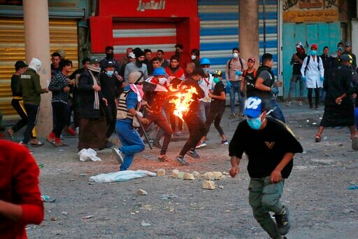 In Karbala, the protesters threw crudely made fire bombs, also known as Molotov cocktails, at security forces while anti-riot police responded by throwing stones at the protesters.