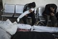 Footage showed them carrying a young girl wrapped in blankets with injuries to her face, and at least two other children who appeared dead. A boy, covered in dust, winced as he was loaded into an ambulance.