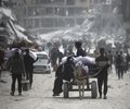 On Wednesday, hundreds of people ran along a seaside road on the outskirts of Gaza City to collect bags of flour and boxes of water and canned food donated by Turkey and Egypt and were part of a shipment trucked in from southern Gaza.