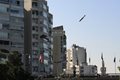 An image captured by an Associated Press photographer showed what appeared to be an 11-story residential building in the Tayouneh area, few kilometers (miles) from central Beirut, about to be hit by a bomb, then bursting into flames.