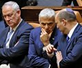 From left, Israeli Defense Minister Benny Gantz, Foreign Minister Yair Lapid and Prime Minister Naftali Bennett. (Emmanuel Dunand/AFP via Getty Images)
