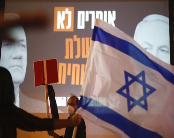The coalition deal and Netanyahu's upcoming corruption trials have triggered large protests in Tel Aviv's main square. Participants in the demonstrations observed social distance in accordance with public health regulations.