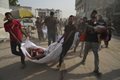Hospital officials reported that at least 34 people were killed on Monday, not including journalists who were slain in a tent shortly before midnight.