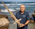 Jacob Sharvit, director of the Marine Archaeology Unit of the Israel Antiquities Authority holds a meter-long (yard-long) sword that experts say dates back to the Crusaders. (AP Photo/Ariel Schalit)