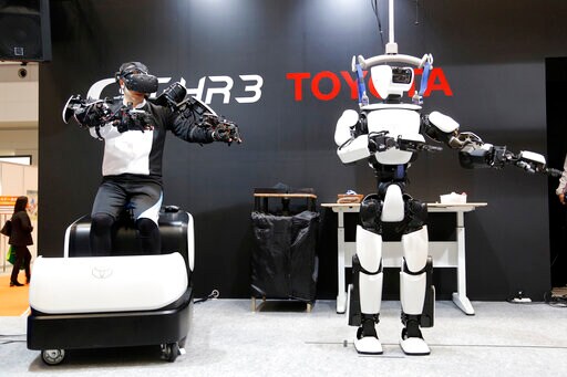 TOKYO (AP) — Toyota Motor Corp.'s upgraded version of the human-shaped robot T-HR3 now has faster and smoother finger movements because the wearable remote-control device has become lighter and easier to use.