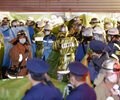 Another video on Twitter showed a bespectacled man dressed in a purple suit and bright green shirt, as worn by the Joker, seated in an empty train puffing on a cigarette, his legs crossed and looking calm. He can be seen through the window being surrounded by law enforcement in a subsequent clip.