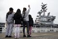 Family members and friends of the crew were on hand to wave the carrier off from Yokosuka Naval Base after its final patrolling mission earlier in the day.