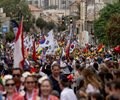 The sight of thousands of Christians walking through the streets of Jerusalem, carrying flags from their nations and signs with messages of love and support for Israel draws thousands of Israelis to the route.