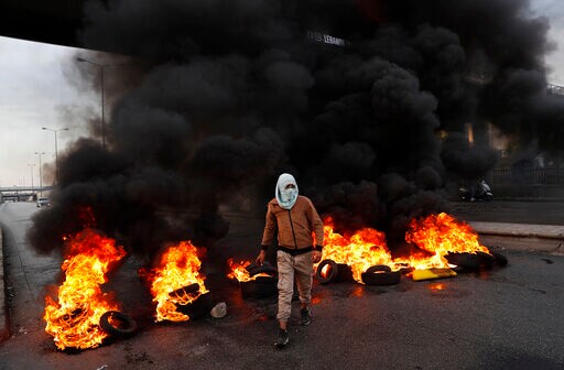 Aoun’s visit came as scores of protesters blocked major roads in Lebanon Monday to express anger against the country’s political class for the worsening economic crisis and harsh living conditions.