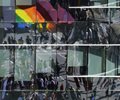 Participants collectively carried a huge rainbow flag down the avenue, with many more sporting rainbow hats, bracelets and T-shirts. The parade was dedicated to the 50th anniversary of the Stonewall Riots in New York City.