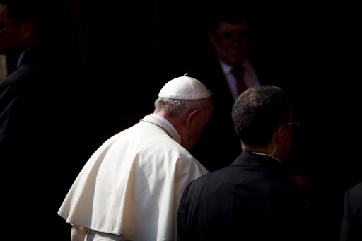 A banner hanging from a building near the Lima church where Francis prayed on Sunday read "Francis, here there is proof" and featured a photo of the disgraced founder of a Peru-based Catholic lay movement, Sodalitium Christianae Vitae.