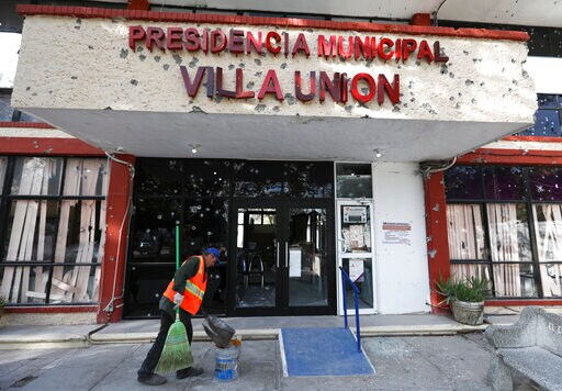 VILLA UNION, Mexico (AP) — A small town near the U.S.-Mexico border began cleaning up Monday, gripped by fear after the killing of 22 people in a ferocious weekend gunbattle between drug cartel members and security forces.