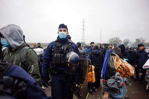 Migrants, including some families with young children, could be seen packing their few belongings as police were encircling the camp early Tuesday morning, on the site of a former industrial complex in Grande-Synthe, east of Dunkirk. Several buses were lined up near the camp.