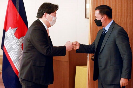 Japan’s foreign minister met in Tokyo on Monday with Hun Sen's son and agreed to cooperate in dealing with the situation in Myanmar. Hun Manet, who heads Cambodia’s army and is Hun Sen's favored successor, accompanied his father during his visit to Myanmar.