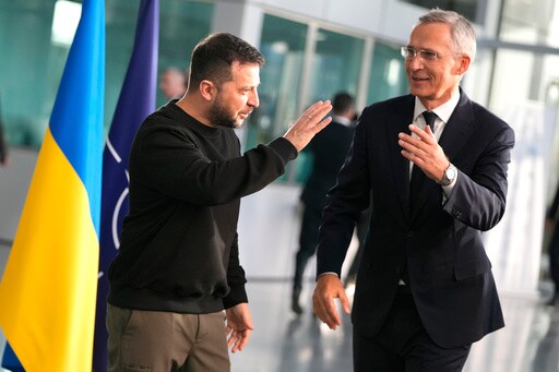 BRUSSELS (AP) — Ukraine President Volodymyr Zelenskyy arrived at NATO for Wednesday's meetings with alliance defense ministers to further drum up support for Ukraine’s fight against Russia.