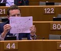 Seb Dance, a member of European Parliament, held up a sign saying "He's lying to you." Dance issued a statement, explaining his protest of Farage's comments.
