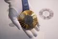 The other side of the Paralympic medals shows a view of the tower as if looking upward from underneath. For visually impaired people, “Paris 2024” is written in Braille and the edges have notches: one for gold, two for silver, three for bronze.