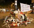 Tribute to policeman, Xavier Jugele on Champs-Elysees in April. (Sipa via AP Images)