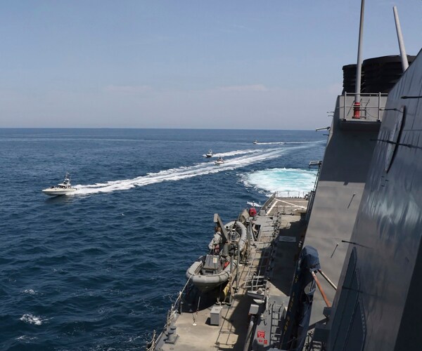 According to the Navy, the Americans issued multiple warnings via bridge-to-bridge radio, fired five short blasts from the ships' horns and long-range acoustic noise maker devices, but received no immediate response, the statement said. After about an hour, the Iranian vessels responded to the bridge-to-bridge radio queries, then maneuvered away.