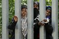 POLAND-BELARUS BORDER, Poland (AP) — A Somali woman pushes her bandaged hand between two vertical bars of a thick metal barrier separating Belarus from Poland as she and four other women gaze toward the European Union.