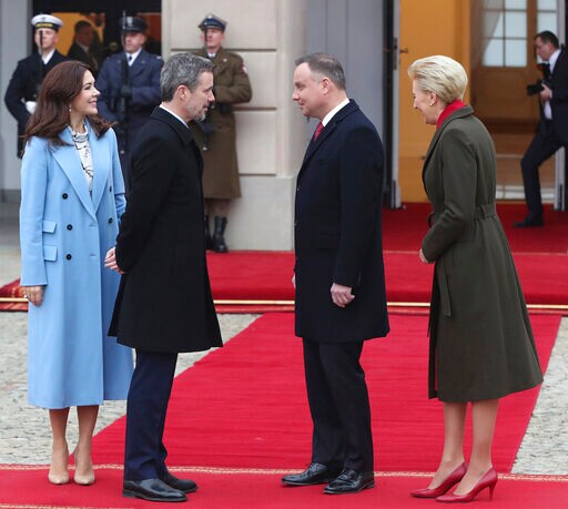 WARSAW, Poland (AP) — Danish Crown Prince Frederik and Crown Princess Mary are marking 100 years of Denmark’s diplomatic ties with Poland with a one-day visit to Warsaw that involves meeting Poland’s president and World War II veterans.