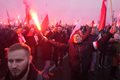 Participants carried Poland's white-and-red flag and some burned flares as they marched along a route leading from the city center to the National Stadium.