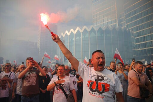 In the yearly ritual, people across Warsaw paused in their tracks, some holding flags or torches. A far-right organization led a march through the city that passed peacefully.