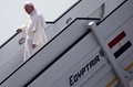 After taking off from Rome's Leonardo da Vinci airport, Francis stepped out of the Alitalia jet to a red carpet welcome in the early afternoon hours in Cairo. Two children, a girl in a white dress and a boy in a black tuxedo, presented Francis with bouquets of flowers.