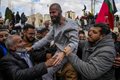 In the West Bank city of Ramallah on Saturday, dozens of freed Palestinians, all looking wan and thin in stained gray Israeli prison jumpsuits, disembarked from a white Red Cross bus. They launched themselves into a jubilant crowd.
