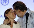 Rajoy’s supporters gathered outside the PP headquarters cheering, singing football songs and shouting “Viva Espana.”